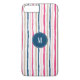 Protégez votre téléphone avec cette élégante coque avec un motif rayé rose, bleu marine, marron et blanc. Personnalisez avec votre nom/initiale/monogramme.