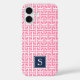 Notre boîte téléphonique classique rose et marine de style preppy est à vous unique, avec votre monogramme initial unique bien caché dans le design! Le coque est doté d'un motif géométrique grec moderne, rose et blanc, avec votre monogramme affiché sur un badge carré bleu marine.