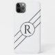 Coques Case-Mate iPhone Monogramme noir en cercle, lignes diagonales blanc