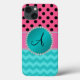 Coques Case-Mate iPhone Monogramme noir rose pois chevrons turquoise