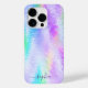 Boîtier de téléphone monogrammé girly unique avec un design holographique irisé.