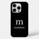 Monogramme | Noir minimal moderne Noir Blanc Nom initial iPhone 15 Pro Coque
