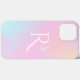 Monogram Ombre Holographic Pink Girly Personalized Phone Case présente un arrière - plan holographique rose et bleu avec votre monogramme personnalisé au centre. Personnalisez en modifiant le texte dans les zones de texte fournies. Conçu par ©Evco Studio www.zazzle.com/store/evcostudio