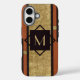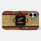 Un design géométrique audacieux, noir et or sur un arrière - plan en cuir tan riche, associé à un minimum de monogramme initial, se combinent pour créer un coque iphone personnalisé sophistiqué et unique. Ces vibes vintages sauront vous plaire, et cette boîte téléphonique fera le cadeau parfait pour la Fête des pères, les anniversaires, la remise des diplômes, les groomsmen, ou un anniversaire de mariage.