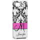 Coques Case-Mate iPhone Monogramme Pink Black White Swirls Damask
