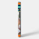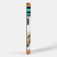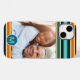 Coque photo monogramme rayé à l'aide d'une palette rétro bleu et orange classique. La couleur des bandes et du cercle monogrammé peut être changée.