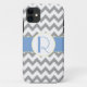 Coques Case-Mate iPhone Monogramme rayé gris et bleu-clair de Chevron