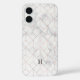 Élégante étui monogrammed dispose d'un arrière - plan imprimé à motifs de marbre dans les tons gris et blanc pâle, avec un motif géométrique de style art déco superposé en feuille d'or imitation rose. Ajoutez votre monogramme initial en lettres noires classiques pour faire de ce coque chic votre propre nom.