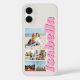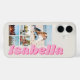 Créez votre propre coque iphone photo-collage personnalisé avec 5 de vos photos préférées dans une grille simple et un nom monogramme personnalisé dans une typographie rose moderne.