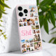 Créez votre propre coque iphone personnalisé avec 25 de vos photos préférées dans une grille de collage photo personnalisée, ainsi que des initiales monographiques en couleur rose.