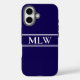 Coques Case-Mate iPhone Monogramme simple bleu foncé et blanc