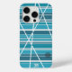 Design abstrait en bleu aqua avec des rayures et des cercles de différentes couleurs.Ce design comporte également un subtil monogramme au bas du coque