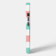 Ce coque de smartphone monogramme tendance pour iPhone est conçu avec un espace monogramme que vous pouvez personnaliser et coloré turquoise pêche et blanc design rayures motif.