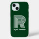Ce monogramme moderne vert iphone 15 coque est à la fois tendance et classique. Il présente votre première ou dernière initiale dans une police en gras et tendance et votre nom dans une police classique de coordination en blanc. C'est simple et minimal.