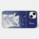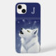 Les amateurs de loups coque iphone fait en bleu, avec des dessins animés d'un loup blanc hurlant dans la neige. Personnalisez le monogramme d'une lettre pour répondre à vos besoins.