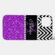 GIRLY MODERN PURPLE GLITTER (PRINTED EFFECT) WITH BLACK AND WHITE CHEVRON PATTERN, MONOGRAMMED WITH YOUR NAME, YOUR INITIAL OU MONOGRAM ON A BLACK STRIPE OR with A BORDER OF PRINTED WHITE DIAMONDS. TRENDY, CHIC, CONCEPTION DE COUPE COOL POUR HER, THE TRENDSETTER, THE FASHIONISTA