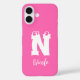 Modern funny hot pink magenta and white monogram and name personalized iPhone case featuring a whimsical fun typography. Suitable for teens and young adults as a birthday or a Christmas gift.