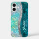 Joli chic et élégant turquoise irisé faux coque iphone de parties scintillant monogramme. Belle couverture moderne et cool pour le brancheur tendance et amateur d'art. Ce design présente un motif irisé, faux parties scintillant dans les teintes océaniques de turquoise, rose et argent. Le coque brille d'un éclat holographique qui capture un style féminin inspiré de sirènes, parfait pour ceux qui aiment le scintillement magique. Personnalisez-le comme un cadeau pour les valentines jour, Noël, anniversaires ou comme un cadeau en général, il fait une idée de cadeau génial pour toute fille, femme ou même les enfants qui aiment les modèles magiques modernes pétillant mignon. VEUILLEZ NOTER : Il s'agit de graphiques imprimés plats - pas de parties scintillant réelle, de bijoux ou de pièces surélevées.