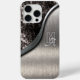 Sortez de la foule avec ce boîtier de téléphone Silver Steel qui attire l'oeil! Ce boîtier de téléphone branché présente une belle conception en métal brossé avec un motif métallique en argent et en pierre noire. Votre monogramme personnalisé est la vedette du spectacle, détaillé pour apparaître gravé dans le métal.