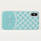 Faites-le unique avec ce grand aqua quatrefoil motif à la mode iPhone X Barely There coque. Vous le personnalisez en ajoutant votre propre nom et une initiale monogrammée au modèle de texte fourni. Le design chic de Island Paradise blue est à la fois élégant et moderne.