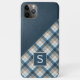 Tartan à carreaux contemporain de couleur marron, beige, taupe et bleu sarcelle foncé, et motif de texture en faux cuir en arrière-plan. Avec la possibilité de personnaliser ou de personnaliser avec un monogramme de nom ou une initiale de votre choix. Belle couverture moderne et cool pour le suiveur de tendances branché et amateur d'art, amateur de motifs artistiques qui souhaite protéger son téléphone de la poussière et de la saleté, de l'usure. Ce design est disponible pour les coques de téléphones cellulaires Apple iPhone 6, 7 et 8 Plus, 10 ou X, XR, XS, 11, 12, 13, 14 Mini, 15 Plus et Pro Max. Montrez votre style, soyez élégant et ressentez-vous stylé avec un design unique sur un accessoire de téléphone mobile de votre choix.