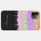 Motif à goutte de parties scintillant pastel et rose chaud, menthe, vert citron et orange. Avec la possibilité de customiser avec un nom, un monogramme ou des initiales de votre choix. Cette conception est disponible en Apple iPhone 6, 7, 8, 10 ou X, XR, XS, 11, 12, 13 Mini, 14, 15 Plus, et coques de téléphones portables Pro Max. Montrez votre style, regardez à la mode, et sentez élégant avec un design unique sur un accessoire mobile de votre choix.