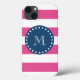 Coques Case-Mate iPhone Motif à rayures roses chaudes, Monogramme bleu mar