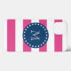 Un simple, moderne, rose chaud et blanc rayures motif avec votre initiale dans une police moderne, sur un étiquette de cercle bleu marine, préppy, nautique, bannière, cadre avec une bordure en ligne blanche pointillée. GraphicsByMimi© Trendy, élégant, mod, lignes audacieuses motif vous pouvez avec votre monogramme pour elle. Utilisez le champ modèle pour ajouter votre monogramme initial ou lettre ou sélectionnez "it" pour plus d'options de modification comme ajouter votre nom, texte ou photo pour créer votre propre design personnalisé unique, personnalisé et unique. Autres couleurs disponibles.