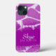 Un coque iphone à motif animal brillant aux teintes violettes audacieuses. Personnalisez cet objet avec votre nom complet. Cet exemple est actuellement lu par Skye Jackson. Ce motif original de Sarah Trett est basé sur le dessin trouvé sur une girafe avec une superposition à mi-teinte en motif de la mémoire créée pour www.mylittleeden.com sur Zazzle.