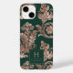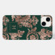 Ce boîtier téléphonique est muni d'un motif vintage orné de feuilles roses en fausse feuille d'or et de fleurs sur un arrière - plan vert émeraude. Personnalisez-le avec votre initiale et votre nom en police serif, encadré par un carré vert émeraude et or rose.