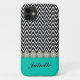 Elégante, romantique, girly, gem fleurs graphiques en diamant serti dans une bordure en faux or avec un motif en zigzag en chevron noir et blanc et une bordure en bleu turquoise clair. Cette conception comprend également un modèle de nom personnalisable pour une personnalisation facile. Cette conception présente des pierres précieuses en diamant et des bordures en faux or autour des pierres précieuses. Ce ne sont pas de vraies pierres précieuses ou de l'or, simplement un graphique.