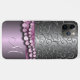 Motif tourbillon argenté faux contemporain, et cordes de perles de faux verre à travers un ruban satiné ou soie. Avec espace pour personnaliser ou customiser avec un monogramme de votre choix. Belle couverture moderne et cool pour le brancheur tendance et amateur d'art branché, amoureux de motifs artistiques qui veut protéger leur téléphone de la poussière et de la saleté, de l'usure et de la déchirure. Cette conception est disponible Apple iPhone 6, 7 et 8 Plus, 10 ou X, XR, XS, 11, 12, 13 Mini, 14, 15 Plus, et Pro Max coques de téléphone cellulaire. Montrez votre style, regardez à la mode, et sentez élégant avec un design unique sur un accessoire mobile de votre choix.