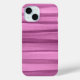 Un coque iPhone 15 mignon et créatif avec une jolie aquarelle avec des lignes abstraites et des rayures dans les tons violet et lavande.