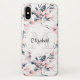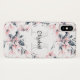 Boîtier de téléphone Casemate avec un élégant motif fait avec une aquarelle illustration de fleurs roses avec feuilles et tiges bleu-gris. Un cercle blanc superposé avec votre nom et votre monogramme initial à l'intérieur.