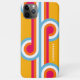 Beaux cercles et lignes géométriques contemporains bleu azur, rouge rose, orange et blanc de couleur vive et motif sur un arrière - plan jaune foncé. Avec l'option de customiser ou de personnaliser avec un nom, un monogramme ou des initiales de votre choix. Design orné, élégant, élégant, élégant et éclectique pour la fashionista artistique sophistiquée, la diva de mode artistique, populaire branché, style d'art rétro vintage, et abstrait amateur de motifs géométriques numériques. Cette conception est disponible en Apple iPhone 6, 7, 8 Plus, 10 ou X, XR, XS, 11, 12, 13 Mini, 14, 15 Plus et coques de téléphones portables Pro Max. Montrez votre style, regardez à la mode, et sentez élégant avec un design unique sur un accessoire mobile de votre choix.