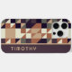 Contemporain aubergine violet, ivoire blanc cassé, brun tan, taupe, beige et vert olive carrés et triangles motif en polygon. Avec place pour customiser ou personnaliser avec un nom, monogramme ou initiales de votre choix. Belle couverture moderne et cool pour le brancheur tendance et amateur d'art branché, amoureux de motifs artistiques qui veut protéger leur téléphone de la poussière et de la saleté, de l'usure et de la déchirure. Cette conception est disponible en Apple iPhone 6, 7, 8, 10 ou X, XR, XS, 11, 12, 13 Mini, 14, et 15 coques de téléphones portables Pro Max. Montrez votre style, regardez à la mode, et sentez élégant avec un design unique sur un accessoire mobile de votre choix.
