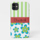 Coques Case-Mate iPhone Motif De Fleurs, Grandes Vertes, Votre Nom
