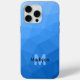 Motif en maille géométrique bleu clair Monogram iPhone 15 Coque. Personnalisez avec votre initiale et votre nom personnalisés. Maille géométrique triangulaire avec dégradé clair à bleu foncé.