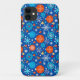 Fond bleu vibrant rempli de divers éléments décoratifs associés à l'hiver et aux célébrations festives. Sont affichés en évidence des ornements colorés, principalement de nuances orange, bleue et rouge, ornés de motifs de flocons de neige complexes et de rayures. De plus, de multiples flocons de neige de formes et de tailles différentes sont dispersés çà et là, ainsi que de petits cercles de couleurs contrastées, ajoutant à l'ambiance festive. L'effet global est ludique et joyeux, évoquant un esprit de fête.