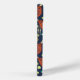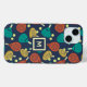 Ce boîtier téléphonique est prêt à être customisé avec votre choix d'origine et dispose d'un motif de padel de raquettes et de balles dans les nuances de terre cuite, or, turquoise, jaune et crème contre un arrière - plan bleu marine.