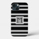 Coques Case-Mate iPhone Motif de rayures à monogramme moderne noir gris bl