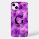 Boîtier de téléphone dans un motif de dalle en pierre de gemme, avec un monogramme en onyx noir - améthyste violet profond dans une pierre matricielle d'orchidée plus légère