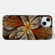 Boîtier téléphonique coque-Mate avec "La Chanteuse Flamme", copyright © 2014, Susan Wallace. Des feuilles Abstraits en vitraux dans les tons orange, jaune et blanc encadrent une fleur centrale.