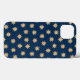 Ce coque iphone est décoré d'un motif d'étoiles en faux feuille d'or sur un arrière - plan bleu marine.