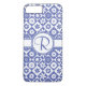 Coques Case-Mate iPhone Motif floral bleu et blanc du monogramme R assez