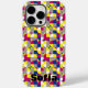 Coques Case-Mate iPhone Motif géométrique fuchsia citron jaune bleu nom