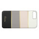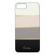 Couvrez votre téléphone dans un coque à la mode avec des rayures modernes chic en noir, gris, rose vif et blanc d'oeuf crémeux. De minces lignes en faux-or séparent les couleurs dans le style design. Personnalisez avec votre nom, monogramme ou autre texte souhaité. Vous pouvez également supprimer le nom de l'exemple affiché si vous préférez le coque sans texte.