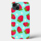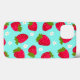 Un étui de téléphone portable avec un mignon motif de fraise avec marguerites sur un arrière - plan bleu. Le coque idéal pour les amateurs de fruits.