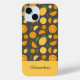 Un étui téléphonique avec une tranche, moitié et motif orange et citron. Un prénom ou un texte personnalisable de votre choix est disponible en bas. Un cadeau frais pour un ami qui aime les agrumes.