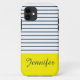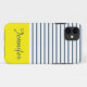 Motif moderne rayé blanc, bleu et jaune avec nom personnalisé